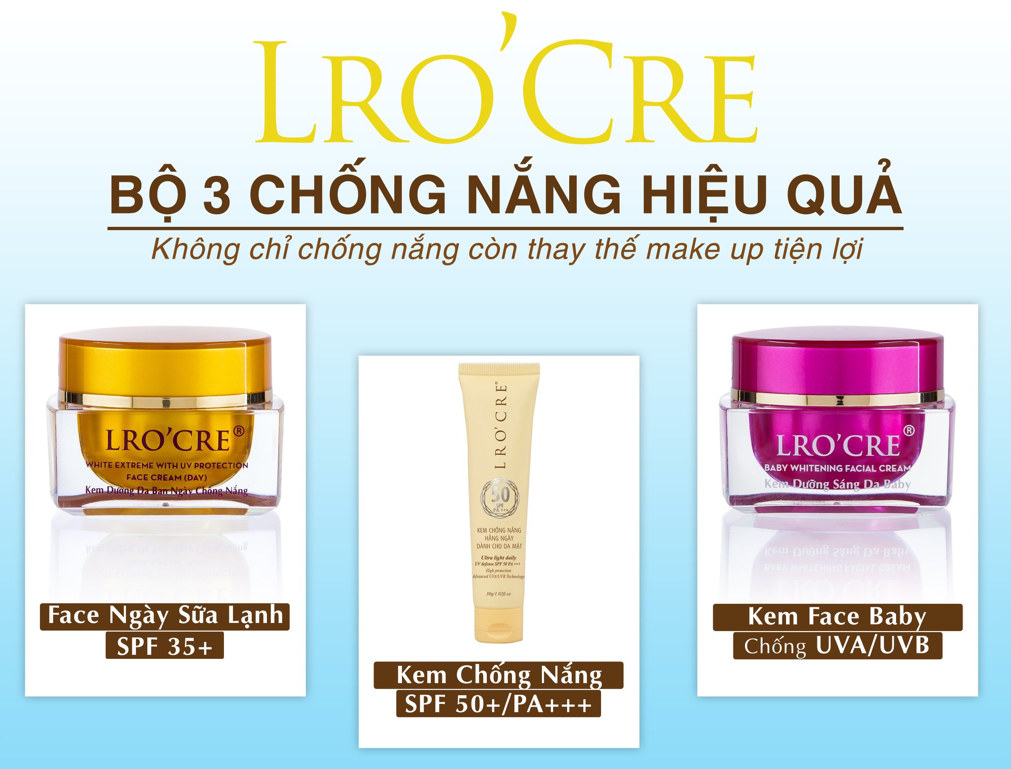 CÁC LOẠI KEM FACE CỦA LRO’CRE ( LOẠI DÀNH DƯỠNG NGÀY – CHỐNG NẮNG)