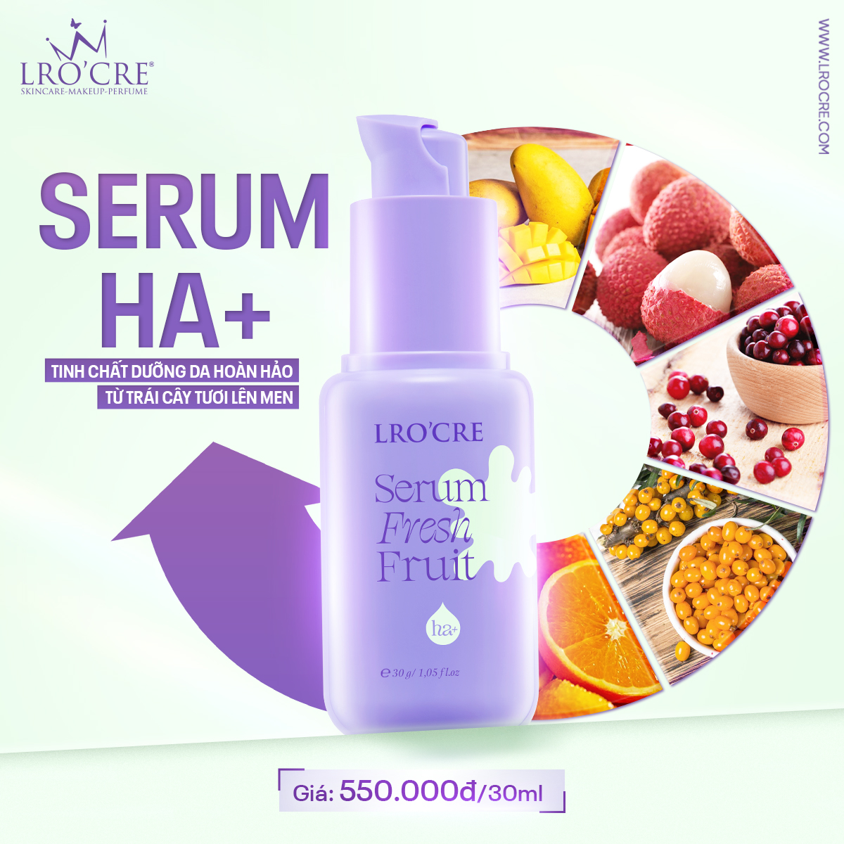 -Serum Lro’cre được chiết xuất từ trái cây tươi lên men – thẩm thấu sâu vào từng lớp biểu bì da, giúp cho