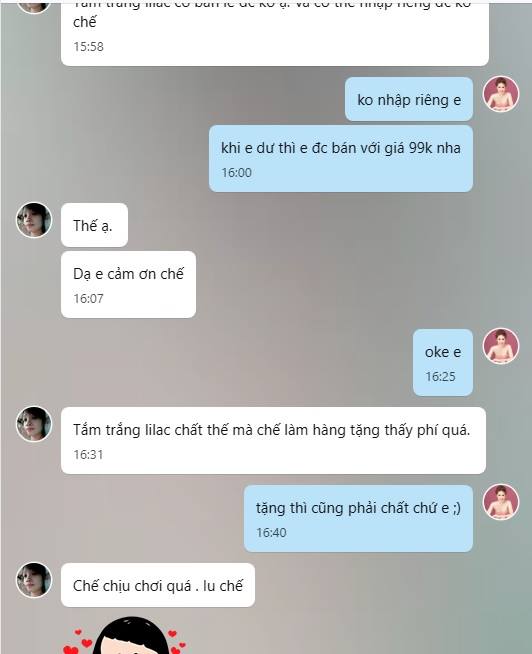 Và để chính xác hơn , chúng tôi đã tim ra những phản hồi từ tin nhắn từ khách hàng đã trải nghiệm , đã sử dụng , Nhưng điều bất ngờ ở đây , Đa phần phản    hòi lại cho kết quả là sản phẩm Tắm trắng Lillac , ( sản phẩm tặng) lại mang lại hiệu ứng không ngờ , có vẻ ngay cả quà tặng thì công ty Lyoan cũng không phải la 1 sản phẩm qua loa